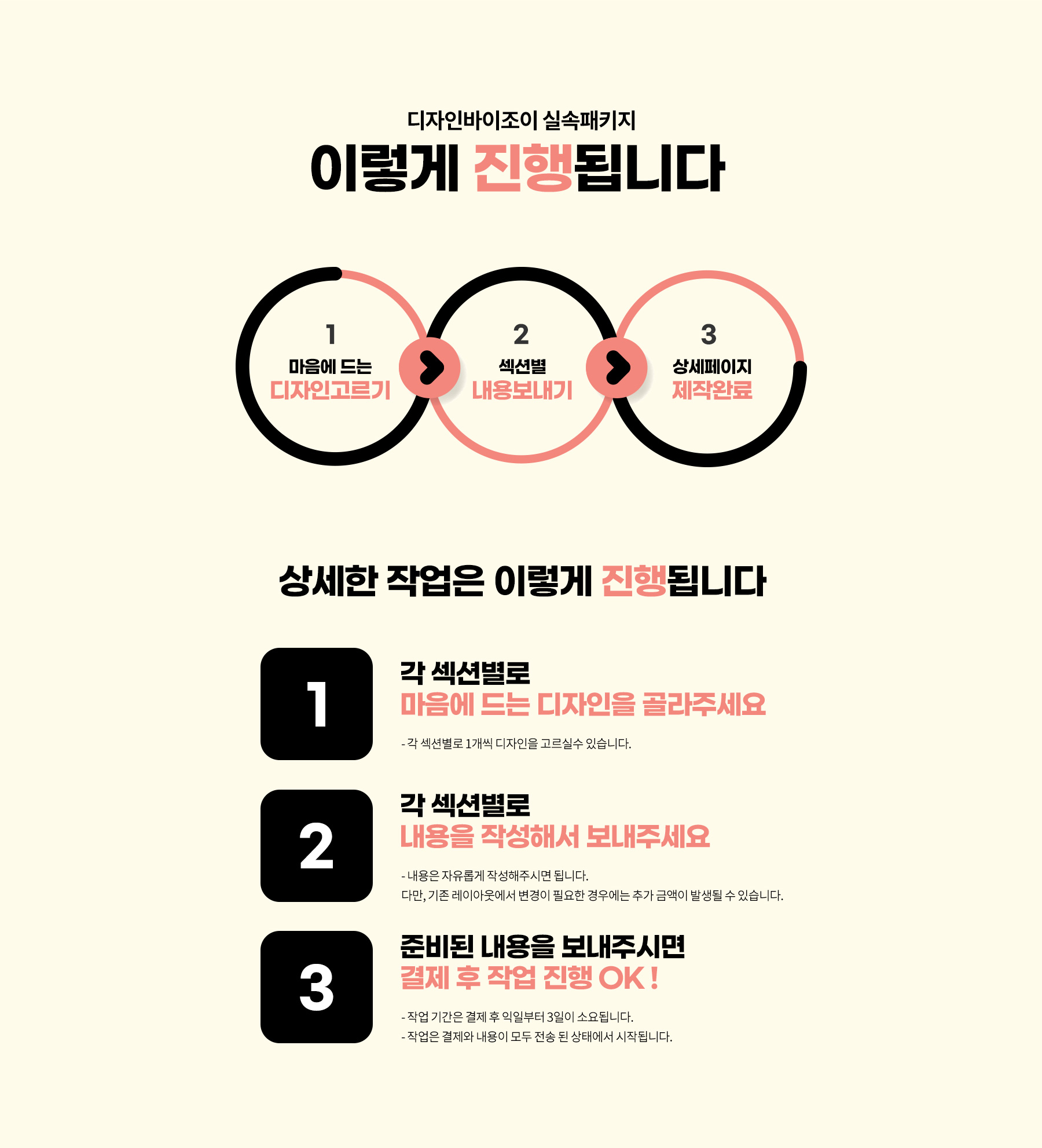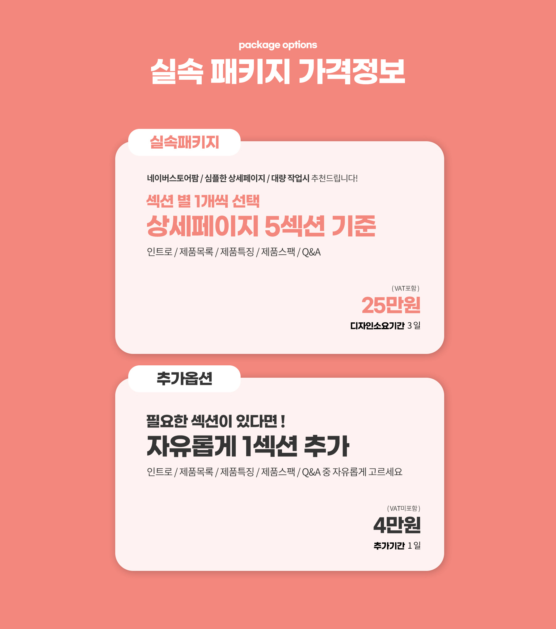 ※ 모든 작업 기간은 최종 자료를 모두 전달 받은 상태에서, 결제 후 익일을 기준으로 합니다